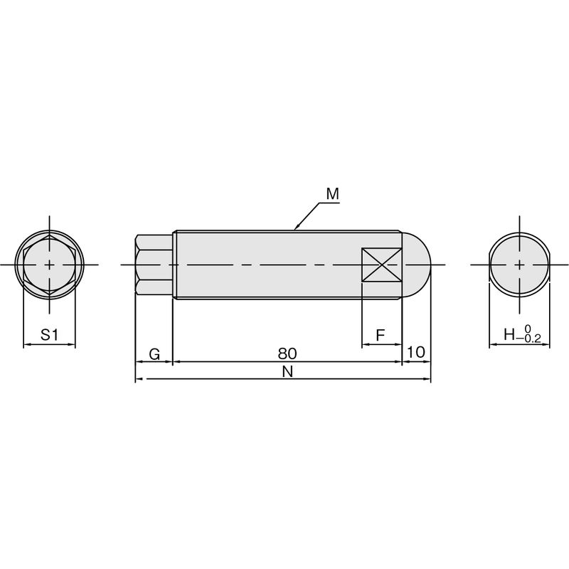 先端付近にも二面幅加工があり、スパナで回すことができます。