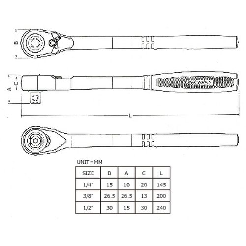 11560 差込角1/4HEX 超小型ヘッドクロスラチェットハンドル