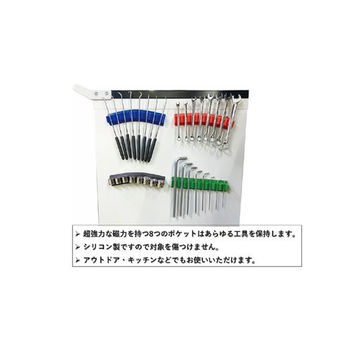 超強力な磁力を持つ8つのポケットはあらゆる工具を保持します。