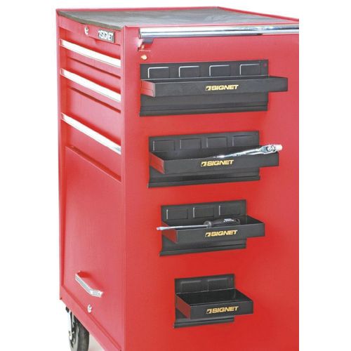背面のマグネットで工具箱等に取り付けることができるサイドトレイ。