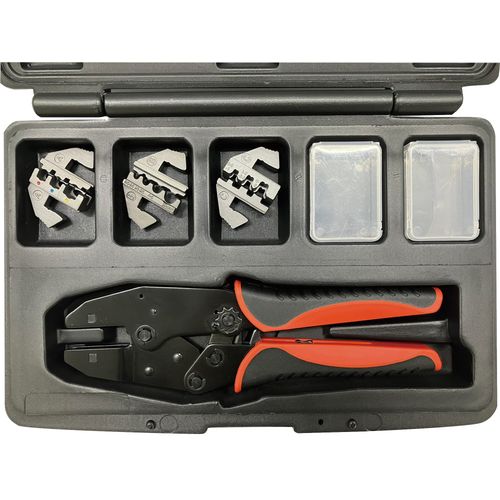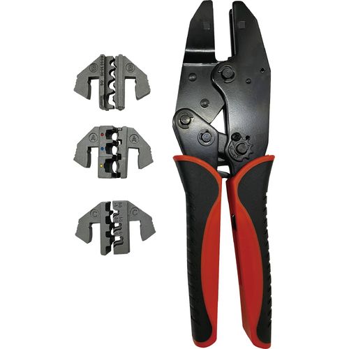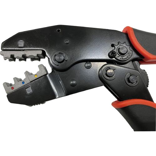 端子に合わせてダイスをセットし握るだけで、安定した圧着を実現します。
