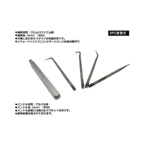 46980 5PC 差替式ピックツールセット マグネットグリップ