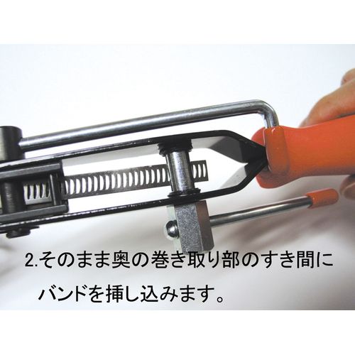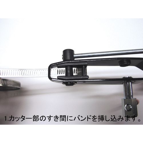 幅3/8”もしくは1/4”のブーツバンドを締めつけ、切断ができる。