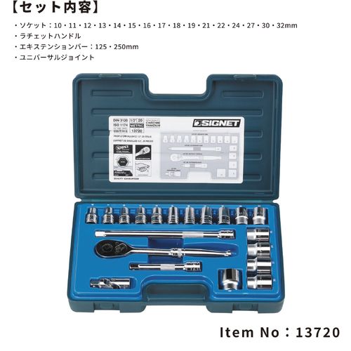 13720 1/2"SQ 20PC MM ソケットレンチセット