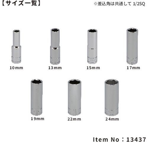 13437 1/2"SQ 7PC ディープソケットセット