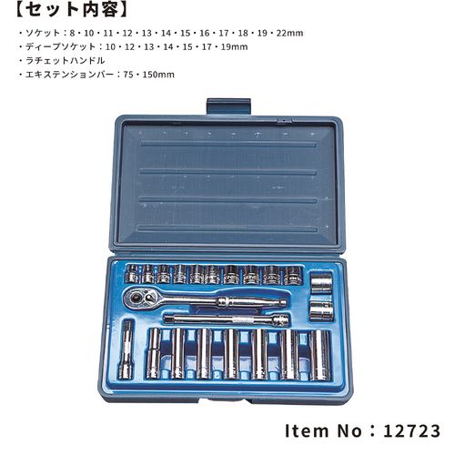 12723 3/8"SQ 22PC MM ソケットレンチセット
