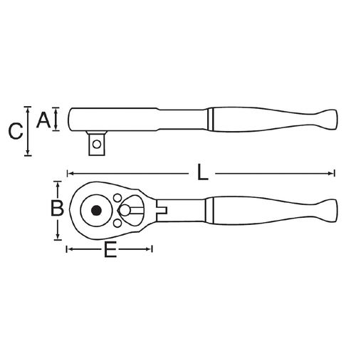 狭い場所での作業に最適なショートタイプのラチェットハンドル。