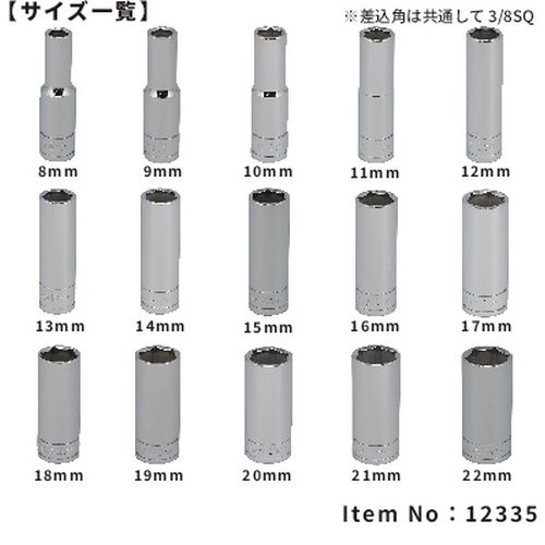 12335 差込角3/8DR 15PC ディープソケットセット ホルダー付