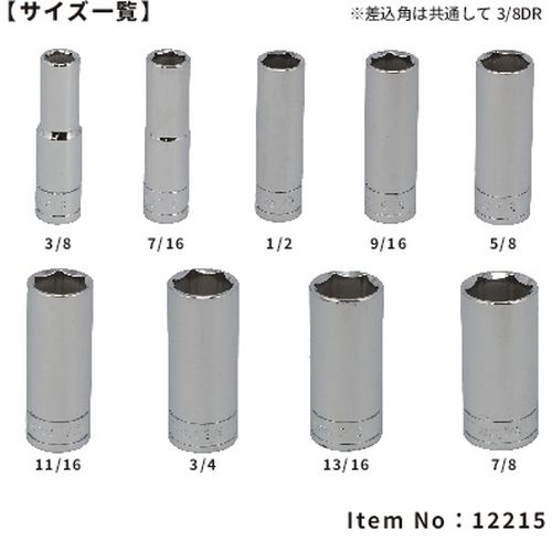 12215 3/8"SQ 9PC インチ ディープソケットセット