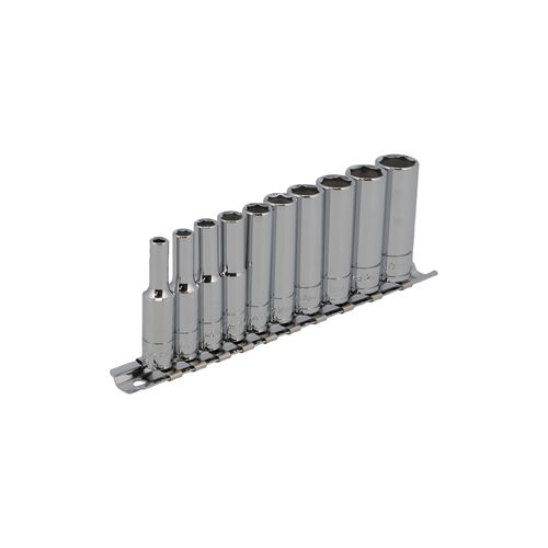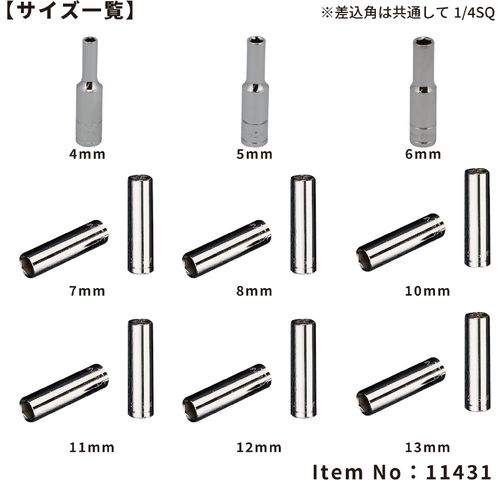 ミラー仕上げのメッキが美しいディープソケットセット。