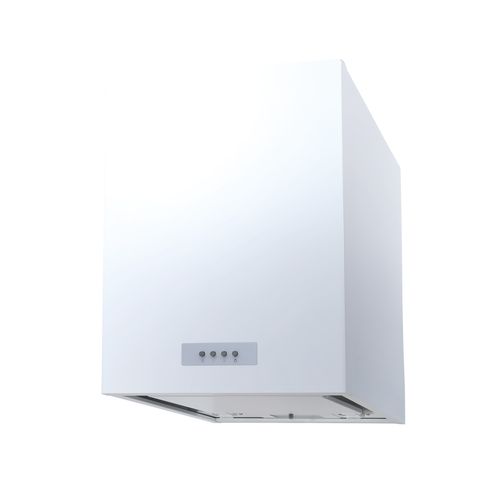 シンプルなボックス型の背面壁付けフード。2段階風速の押しボタンスイッチを採用。