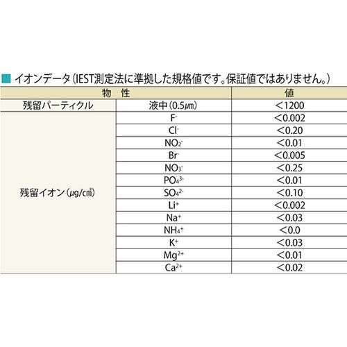 SO42-(硫酸イオン):<0.10、Li+:<0.002、