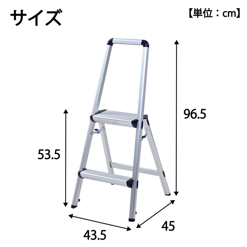 YM-B02SG(DBL) 樹脂取っ手付きで開け閉め簡単 上枠付き踏み台2段