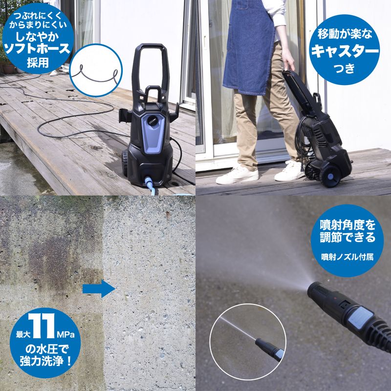 最大11Mpaの水圧で強力洗浄が可能
