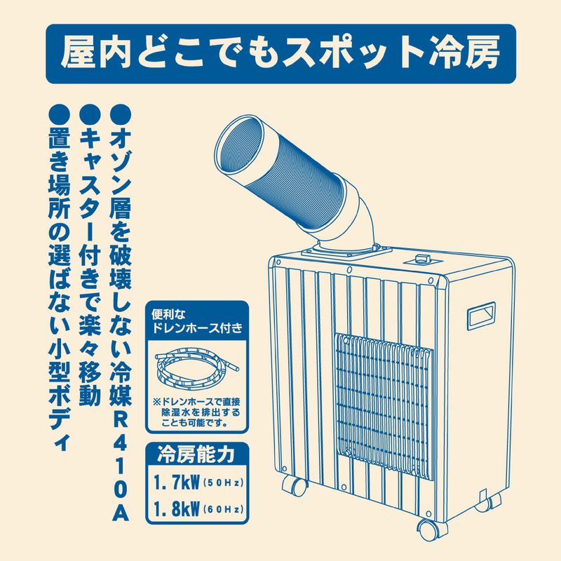 冷風ダクト用エルボ、ワンタッチ装着リング、冷風ダクト、ドレンホース1.5m