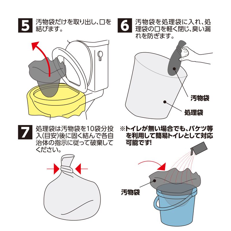 凝固剤×50、汚物袋(黒)×50、便座カバー(黄色)×2、処理袋(白)×10