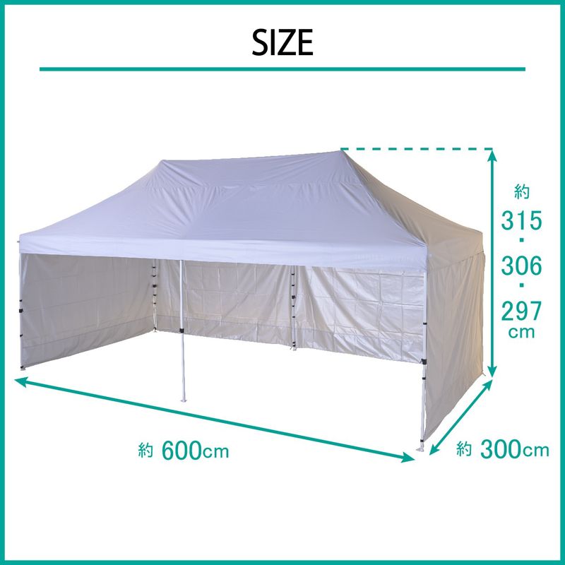 FRT-600(WH) フォールディングタープ サイドシート4付 3×6m