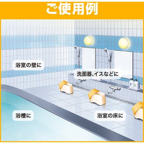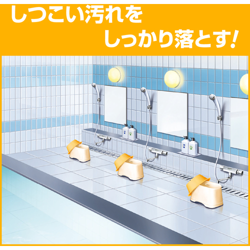 浴槽はもちろん、床、壁、洗面器、イスなどの湯アカ・石けんカスもスッキリ落とせます。