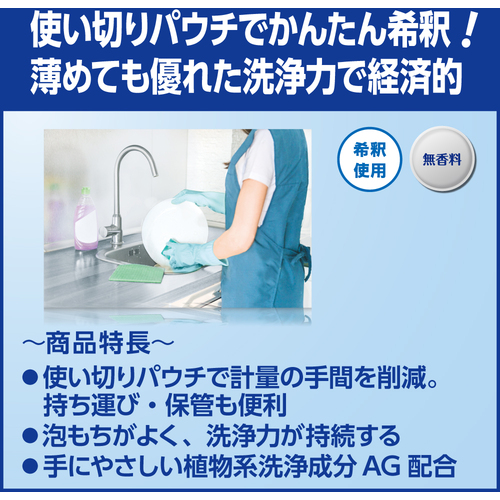 植物性洗浄成分AG配合です。泡切れがよく、手に優しい使いきりで簡単に希釈できます。