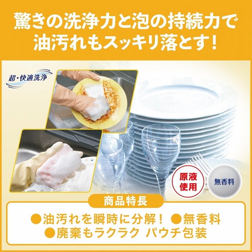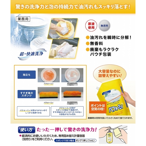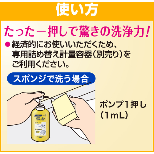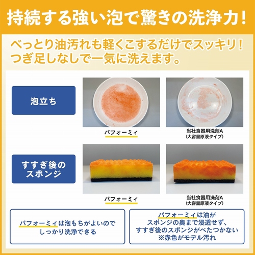 驚きの洗浄力と泡の持続力で、べっとり油汚れも軽くこするだけでスッキリ落とします。