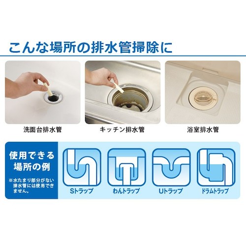 スティック状の錠剤でパイプの汚れやニオイを洗浄します。