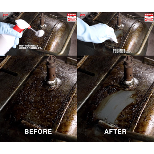 ムースタイプのアルカリ性脱脂洗浄剤で、工場や事務所内の頑固な汚れを落とします。